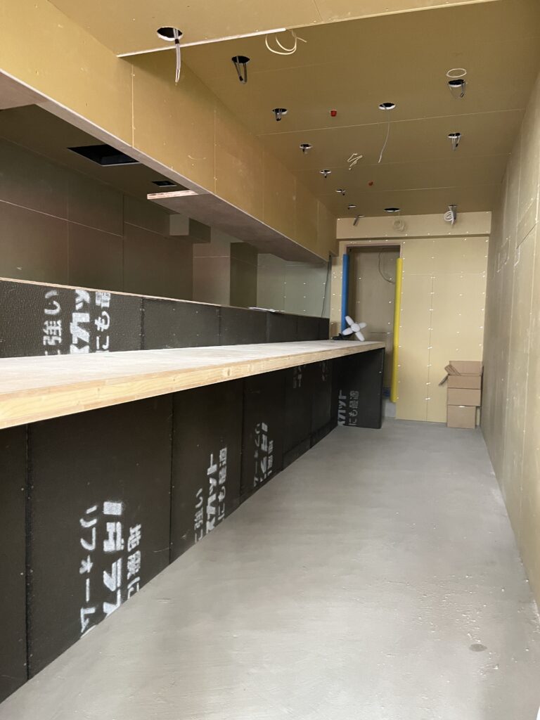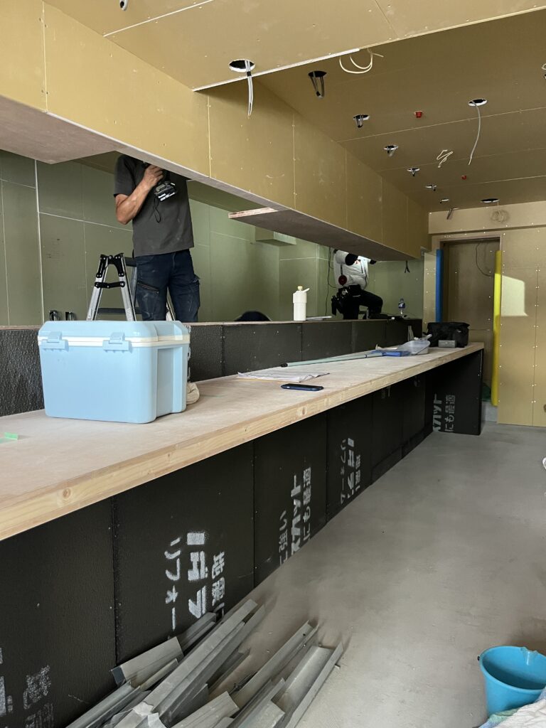 布施高架下では造作工事の仕上げに入ります。