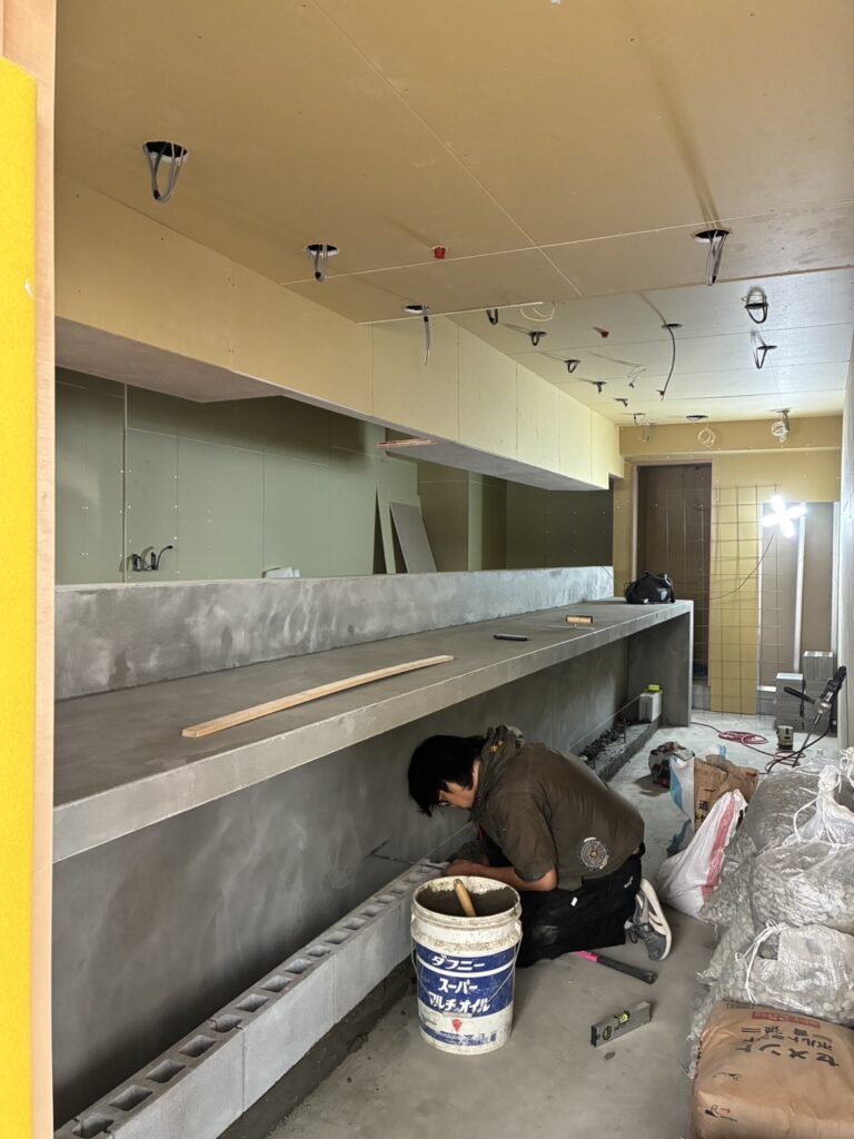 そしてメインのカウンターモルタル仕上げ。