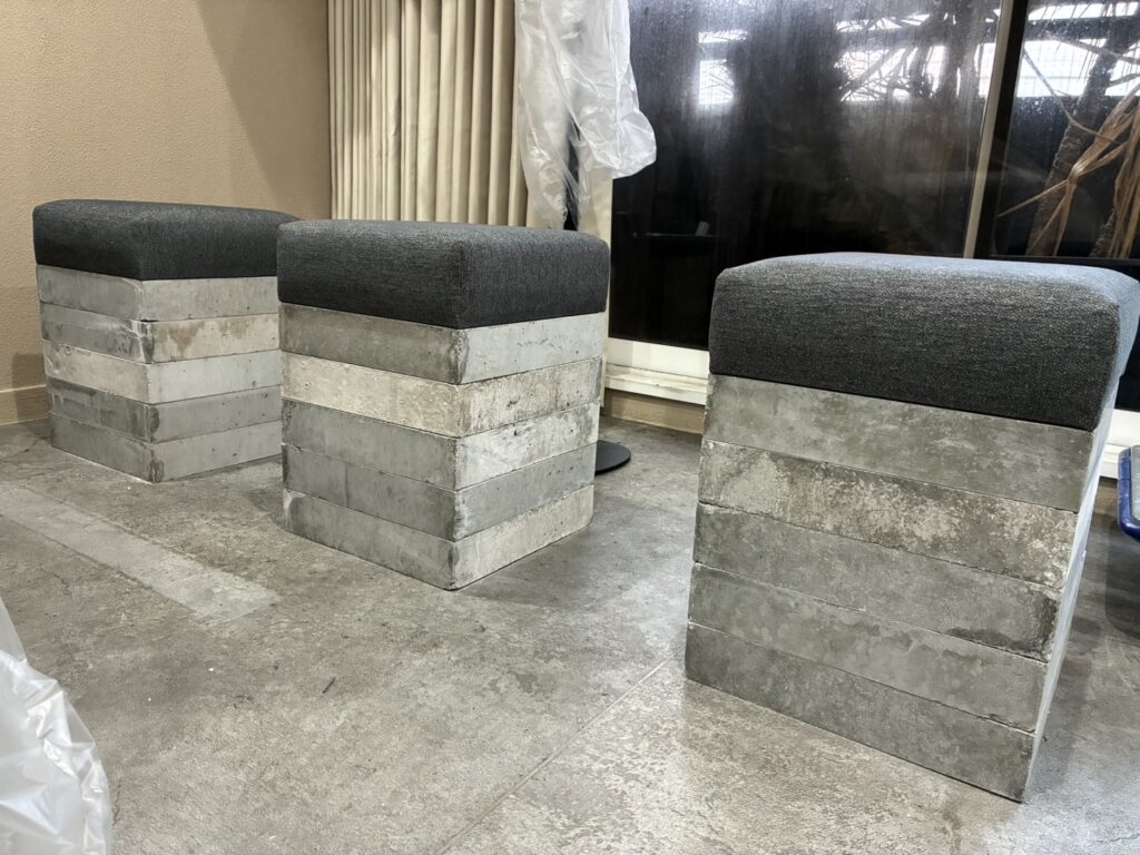 モルタルブロックスツール/クッションを添えて・・・