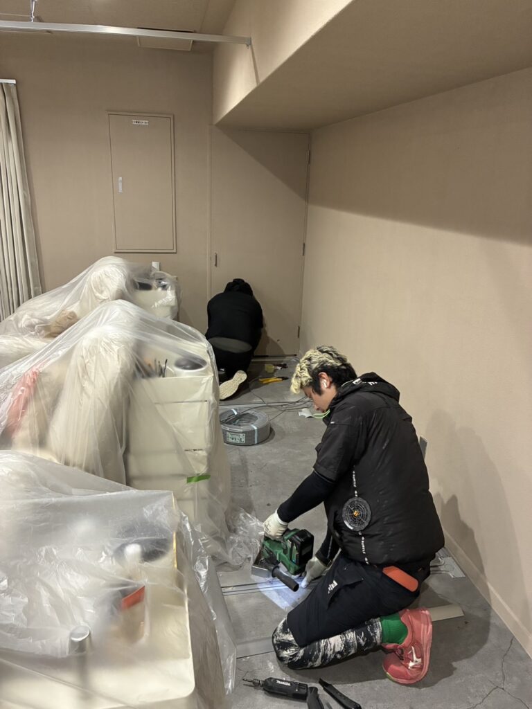 カーテンレールが取付完了し、備品の取付です。