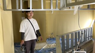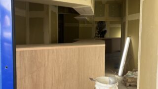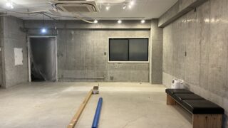 アパレルショップ改装工事人気店元々営業されていたので什器等沢山あったのですが、解体、移動してすっきり。ここから新しい什器や収納を造っていきます。このものがない状態で作業しやすいのが天井ですよね。なので先に天井の照明関係を施工していきます。什...